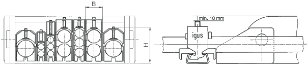 The dimension H in the table is based on the respective use of the max. nominal cable diameter. In thinner cables, different dimensions can arise.