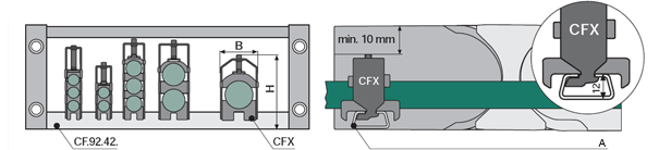 The H dimension in the tables is based on the maximum cable diameter. Cables with smaller diameters may result in lower overall clamp housing heights. Tightening torque for CFX clamps 1.5 Nm