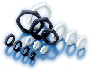These hexagonal lock nuts are suitable for a wide range of applications. High torque guarantees a safe connection of the system. Made of reinforced polyamide glass fiber