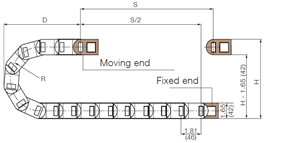 Pitch: 1.81 (46 mm) per link = 7 links/ft (22/m)