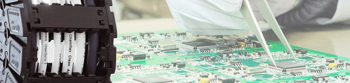 e-chains® para evitar cargas estáticas durante los procesos de fabricación de componentes electrónicos o ensamblajes (ESD) y para evitar la acumulación de cargas encendibles