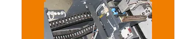 por inyección En el caso de esta aplicación con una cadena E igus® de la serie E2/000, se ahorra una cosa sobre todo: espacio. La cadena de energía se instaló en una herramienta de moldeo por inyección de manera que no se necesita espacio adicional en dirección horizontal para el movimiento de descarrete. En dirección vertical, el espacio sobre el área de la mesa lateral también permanece libre y puede ser utilizado para otros fines.