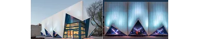 At the Europa-Haus in the Amsterdam Marine Quarter, which was built for the duration of the Dutch Presidency of the EU. The airy façade of this house is reminiscent of historic sailing ships, which were previously produced in this district. The 3D printed elements made of biodegradable plastic, which can be recycled at the end of the presidency, can be recognized below the sails. The 3D-printed façade elements are accompanied by 3D-printed seat elements, which were also created with Actual's 3D printer.