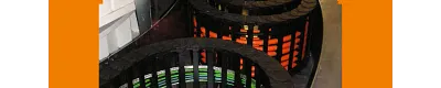 These scales which are used for tests in the wind tunnel can be turned through 180° in both directions away from their original position. The travel speed is about 2° per second. This application was solved using three igus® e-chains® of the 5050 series, which guarantees independent feed to power, measuring and control cables in a compact and low-cost version which does not require much installation time and takes EMC criteria into account.