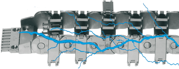 Cadena portacables con apertura y cierre a presión, terminales de montaje y división interior en versiones ESD disponible desde stock
