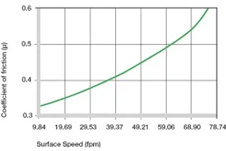 El coeficiente de fricción se altera como la resistencia al desgaste al aumentar la carga y la velocidad superficial.. Con el aumento de la velocidad y la carga constante, el coeficiente de fricción aumenta constantemente. En contraste se nota un comportamiento inverso al aumento de la carga y la velocidad constante (ver Figuras 9.4 y 9.5) La fricción y el desgaste dependen en alto grado del compañero inverso. Los ejes muy lisos aumentan el coeficiente tanto de fricción como de desgaste. iglide® A290 demuestra ser relativamente insensible a las superficies del eje y conserva un coeficiente de fricción de 0.4 µ con acabados superficiales promedio de Ra