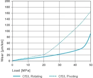 En caso de desgaste, los cojinetes iglide® V400 muestran mejores valores en aplicaciones giratorias que en movimientos pivotantes.